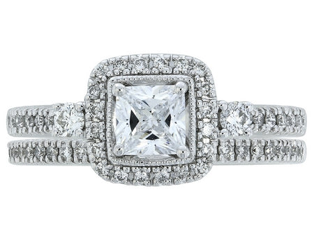 14K White Gold Diamond Halo Semi Mount Engagement & Wedding Band Set
