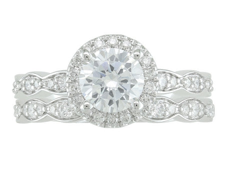 14K White Gold Scalloped Diamond Halo Semi Mount Engagement & Wedding Band Set